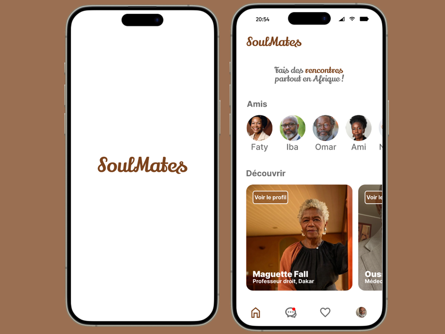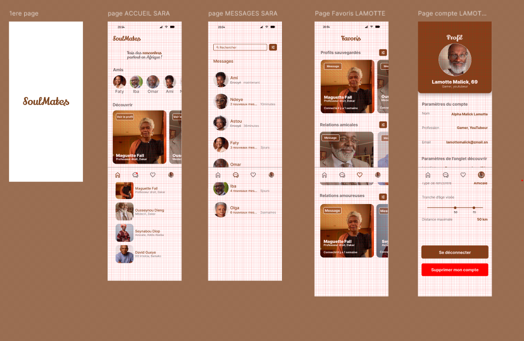 SoulMate est une application de rencontre spécialement conçue pour les séniors africains, offrant un espace chaleureux et sécurisé pour bâtir des relations authentiques et durables. Créée dans le cadre d’un projet de groupe pour un cours d’interface utilisateur (UI), Soul Mate a pour mission de permettre aux séniors de tisser de nouveaux liens, d’échanger et de partager des moments de complicité, tout en tenant compte de leurs besoins et préférences.